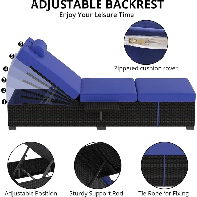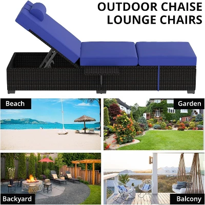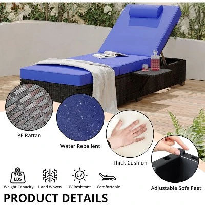 - 【Outdoor Rattan Recliner Comfortable Seat】Patio chaise Lounger has thickened cushions(2.3″) with high resilience sponge of the pool chairs, and attached headrest, which is extraordinarily comfortable and relaxed.
