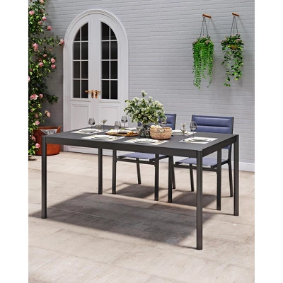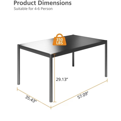 - Stylish & Easy-Clean Tabletop:The sleek surface of this outdoor table offers a modern, stain- and scratch-resistant finish. It’s easy to wipe clean after meals or parties, making maintenance effortless for busy outdoor living Modern & Versatile Design: With its clean lines and neutral tones, this patio table for outside blends beautifully with any décor in your garden, patio, balcony, or porch. The spacious rectangular design comfortably seats up to 4-6, making it an ideal backyard table for gathe