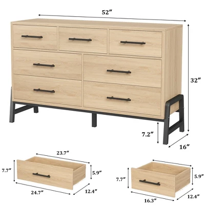 7 Dresser for Bedroom, 52″ Wide Dresser, Wide Drawer with Storage Freestanding, Wooden Closet Storage Chest for Living Room, Bedroom, Entryway