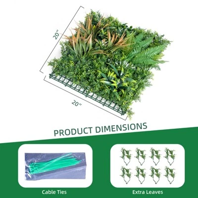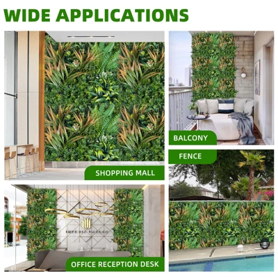 Name: Artificial Plant Wall PanelsMaterial: PEQuantity: 12 PackPackage List: 12 Grass Panels,20 Zip Tiles
