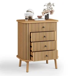 Fluted 4 Drawers Dresser, Tall Modern Chest Of Drawers, Bedroom Dressers With Drawers