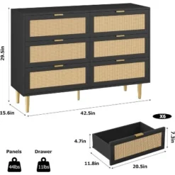 Modern Dresser With 6 Deep Drawers Wooden Chest Of Drawers For Bedroom