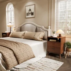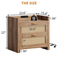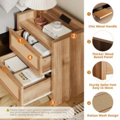 Mid-Century Nightstand With Drawers, Side Table With Charging Station