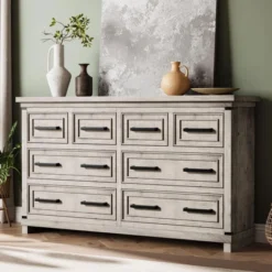 Garvee Farmhouse Gray Nightstand With Drawer And Storage Shelf For Bedroom Living Room