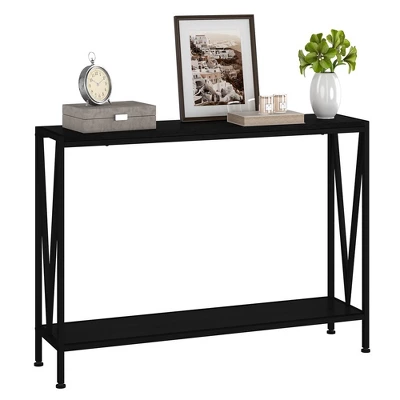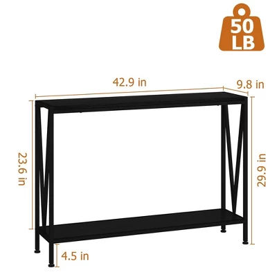 - Perfect Size: Sized in 42.9” x 9.8” x 29.9”. The narrow console table takes up very small space, but offers a large storage capacity. The lower shelf allows to place boxes, books and vases and fully reclaims the space.