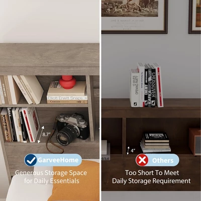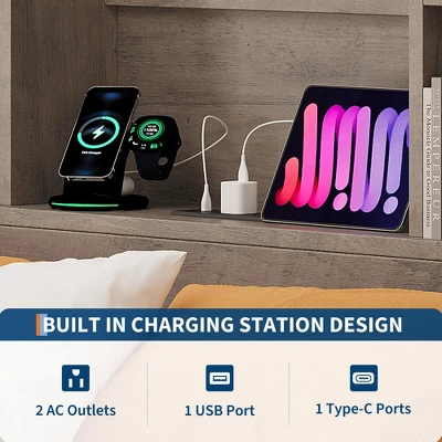 - 【Wood Bed with 51″H Storage Bookcase & Charging Station】This headboard features a built-in charging station, which includes 2 AC outlets, a USB port, and a Type-C port, allowing you to charge your tablet, phone, or other mobile devices without worrying about a low battery. Compared with other storage headboard spaces, our 8.7″W storage compartments are more spacious, it’s convenient for you to store many frequently used items, such as mobile phones, glasses, books, etc.