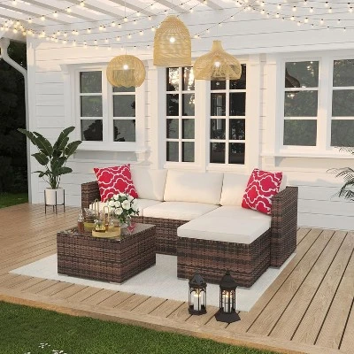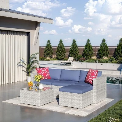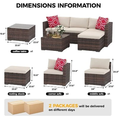 - Highly Adaptable Style: Featuring distinctive couches, ottomans, and configurations, this set complements any decor with its casual yet graceful design. The glass-top patio table adds convenient storage for outdoor essentials.
