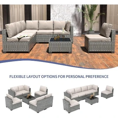 Garvee 7-Piece Patio Furniture Set, Rattan Wicker Sectional With Cushions, Modular Conversation Couch Set For Porch, Garden, Or Deck