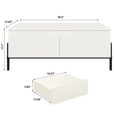 - [Various storage spaces]: With the dimensions of 21.45″D x 39.3″ W x 17.7″H, featuring two drawers and a spacious open storage space at the back, this white coffee table offers ample storage for daily use.