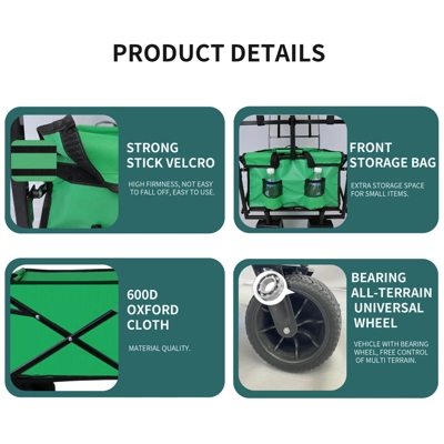 Description:Name: Collapsible Wagon Material: SteelColor: GreenPacking list: Collapsible Wagon x 1