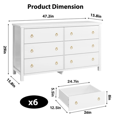 - Ample Storage: Equipped with six extra-deep drawers, this dresser meets all your organizational needs, accommodating everything from clothing to everyday items. The top surface provides additional room for decor or essentials. Enjoy a clutter-free and tidy living environment.