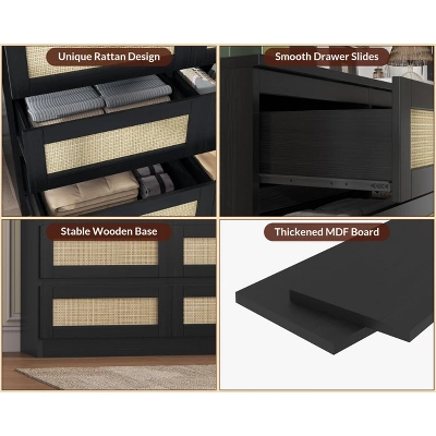 - MULTI-PURPOSE WOOD DRESSER: Not only a dresser, it can also be used as a table sideboard, TV stand, clothing organizer, entryway table, living room storage cabinet. The rattan chest of drawers is ideal for bedroom, living room, entryway and others that need storage. It not only helps you to organize your room, but also as a decoration to make your home more attractive.