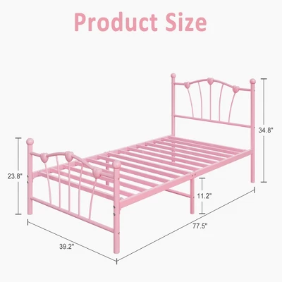 - ELEGANT DESIGN – Transform your bedroom into a fairy tale with this charming twin bed frame. The graceful curved lines and whimsical heart-shaped headboard and footboard create a romantic and enchanting atmosphere, making it the perfect sanctuary for any princess at heart.