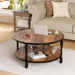 Farmhouse Nesting Coffee Table 31.5″ & 22.8″ Small Round Living Room Coffee Table With Drawer