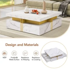 Garvee Coffee Table With 2 Handle-free Drawers White Center Table With Open Storage Shelf
