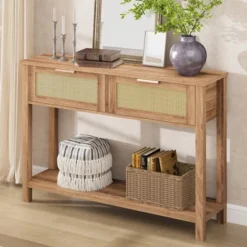 Narrow Console Table, Small Entryway Table With Engineered Wood Shelf And Metal Frame
