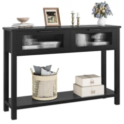 Entryway Table, Wood Console Table With 2 Glass Drawers, 2 Tier Sofa Table With Storage
