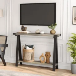 Entryway Table, Console Tables With Storage, 39.3”Rustic Sofa Table With Adjustable Shelf