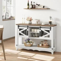 Farmhouse Console Table, Sofa Table With 2-Door, Entryway Table With Storage Shelf, Hallway Table