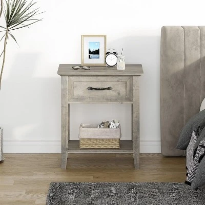 Nightstand with Drawer and 2-Tier Storage Shelves, Versatile End Table for Bedroom, Living Room, Dorm, and Small Spaces
