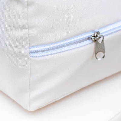 Dimensions:Table Size: 17.7x15x16.9 Cushion Thickness: 4.7 Specifications:Table Material: Acacia wood Lounge Chair Material: Acacia wood Cushion Cover Material: Polyester Cushion Filling Material: Foam Cushion Cover Closure Method: Zipper Table Top Weight Capacity: 132 lbs Lounge Chair Capacity: 421 lbs Ottoman Capacity: 271 lbs Installation Precautions:Tips 1: It is best to lay cardboard on the ground before installation to avoid staining or scratching the product. Tips 2: Try to avoid friction between product partes during installation, otherwise it may cause scratches that are difficult to remove. Tips 3: Do not tighten the screws too early.