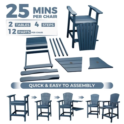 Outdoor Recycled Poly Adirondack Barstools Set of 2 – Tall Weatherproof Bar Height Chairs w/ Removable Tray, Blue (350lb Capacity)
