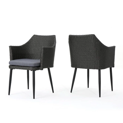 Description:Name: Dining ChairsMain Material: PE Rattan+Iron+Waterproof FabricFrame Material: IronColor: GreyProduct Dimensions: 23.50×25.50×34.00in/pcsProduct Weight: 17.86lbs/pcsSeat Width: 18.75inSeat Depth: 19.00″Seat Height: 17.00″Number of package: 1Package Size: 30.75×27.75×20.50inPackage Weight: 55.93lbsPacking list:2 x Dining Chairs