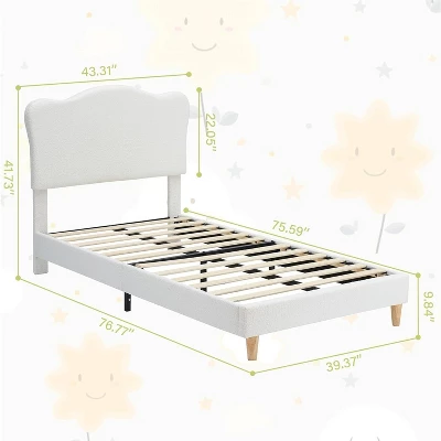 MODERN UPHOLSTERED BED – The twin bed girls is defined by its luxurious headboard, adding elegance to any bedroom. Its modern aesthetics ensure it complements diverse decor styles, providing a chic element to the interior. This pink bed frame twin is particularly appealing for children¡¯s rooms, merging function with flair in a practical twin bedframe for everyday use. STURDY STRUCTURE – Constructed with a twin girls bed configuration, this frame includes a robust metal structure supported by sturdy wooden slats and additional center legs. This twin size bed frames for girls supports up to 550 lbs, offering exceptional strength and stability. It¡¯s designed to last, making it a reliable choice for a girls twin bed frame that stands the test of time. PREMIUM WOOL FABRIC- The full platform bed frame features a wool-infused fabric, renowned for its softness and warmth. It offers a plush, skin-friendly texture that mimics the feel of natural sheepskin, providing a gentle and skin-like touch experience. Suitable for both boys and girls, it ensures a cozy and sweet sleeping time. COMFORT AND LONGEVITY – The twin girl bed uses premium velvet and memory foam to deliver comfort and durability. Its breathable, high-resilience foam maintains its shape, offering a supportive backrest. This twin bed frame for girls ensures long-lasting comfort, maximizing the user experience with a focus on quality materials. VERSATILE DESIGN FOR ALL AGES – Serving as a twin bed girls, this piece is versatile enough for various ages and settings. With its modern design and robust build, it’s suitable for both children and guest rooms. The adaptability of this pink bed frame twin ensures it meets different needs while maintaining its aesthetic appeal. EASY ASSEMBLY – With user-friendly assembly, this girls bed frame comes with all components neatly packed in one box. The Velcro-attached slats make the construction process straightforward, allowing the twin bed for girls to be built swiftly and easily. Its design facilitates a quick setup, minimizing hassle and time, ideal for busy households.