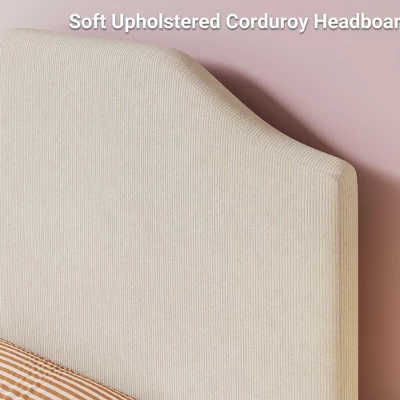 COMFORTABLE AND STYLISH: This pink bed frame features modern corduroy fabric and a vertical line headboard, offering a look that is both simple and stylish. The cozy corduroy and soft sponge wrap the frame, adding an elegant touch to any bedroom. It provides a soft and tranquil sleep experience, perfect for boys and girls who desire an appealing appearance and a quiet sleep environment. STRONG AND RELIABLE: Constructed with a sturdy metal frame and central support legs, this twin bed frames for girls offers firm and powerful support. The high-quality metal frame combined with high-density wood slats ensures both aesthetics and strength. This construction guarantees that your bed frame remains undamaged and has a long-lasting lifespan. ADJUSTABLE HEADBOARD HEIGHT: The twin bed frames headboard is adjustable, allowing you to tailor the height according to your mattress. It can be raised by up to 2.9 inches, enhancing comfort and providing a cozy spot for children to lean against. This feature effectively supports their healthy growth and evolving comfort needs. SAFE AND CONVENIENT: The twin bed frames with headboard is set at a height of 9.5 inches, minimizing the risk of falling and providing safety for children. The lower height makes it easy for kids to use, allowing them to sleep worry-free. This thoughtful design ensures that they can get in and out of bed safely and conveniently, promoting a healthy sleep experience. NOISELESS AND NO BOX SPRING NEEDED: This twin size bed frame does not require a box spring, saving costs. The durable Velcro wood slats reduce noise, offering a stable and long-lasting bed frame. This ensures a quiet sleep environment, enhancing overall rest quality while extending the lifespan of the bed frame. EASY TO ASSEMBLE: With clear instructions and labeled parts included, it ensures an efficient assembly process. Most adults can complete the installation within an hour. If there are any questions, our support team is always ready to assist, ensuring that the assembly process is as smooth and straightforward as possible, providing a positive experience for users.