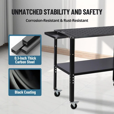 With a robust 1200lbs load-bearing capacity, this steel welding workbench table is designed to support heavy-duty industrial projects, ensuring stability and durability.Perfect for a wide range of uses, from heavy-duty industrial welding, cutting, and sawing to home crafts and garage repairs. This versatile table meets all your welding needs.